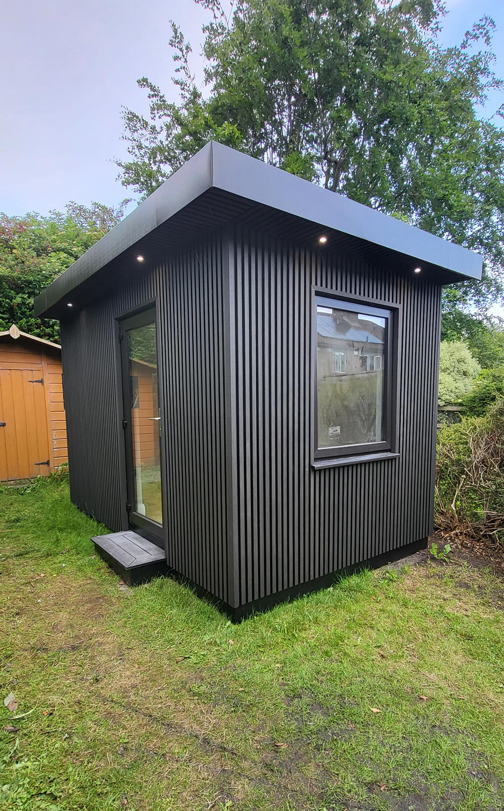 Rooms Outside were the front runners when we were looking for a company to build us an office/ extra living space in our back garden. The combination of good finish and insulation, and the options to tailor the design and add charred larch cladding really stood out for us. There was a long waiting list (thanks Covid and supply shortages!) but once the project got started the work was quick and done to a very high standard. Martin, Patrick and the rest of the crew were a pleasure to deal with and the awkward access to the back garden was no problem. We are delighted with the final result. If you're looking for a standout garden building, don't hesitate to choose the charred larch finish, it looks fantastic.